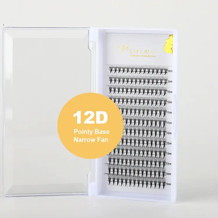 Узкие вентиляторы Promade 12D из ресниц SP изготовлены из высококачественного синтетического шелка PBT, сочетая мягкость и легкость ресниц для норки с естественным керлингом и плотным внешним видом, характерным для синтетических ресниц. Световой клей, соединяющийся в основе, обеспечивает пушистую, перенскую поверхность с полугликованным матовым черным видом, который добавляет роскошное ощущение.