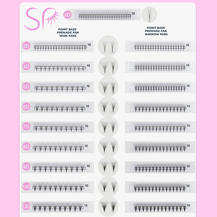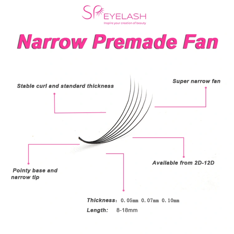 Узкий поклонник: узкий, чем широкий фанат, они идеально подходят для клиентов с густыми натуральными ресницами. Они предотвращают беспорядок и создают равномерный, плотный, объемный вид ресниц, который имитирует эффект подводки для глаз.