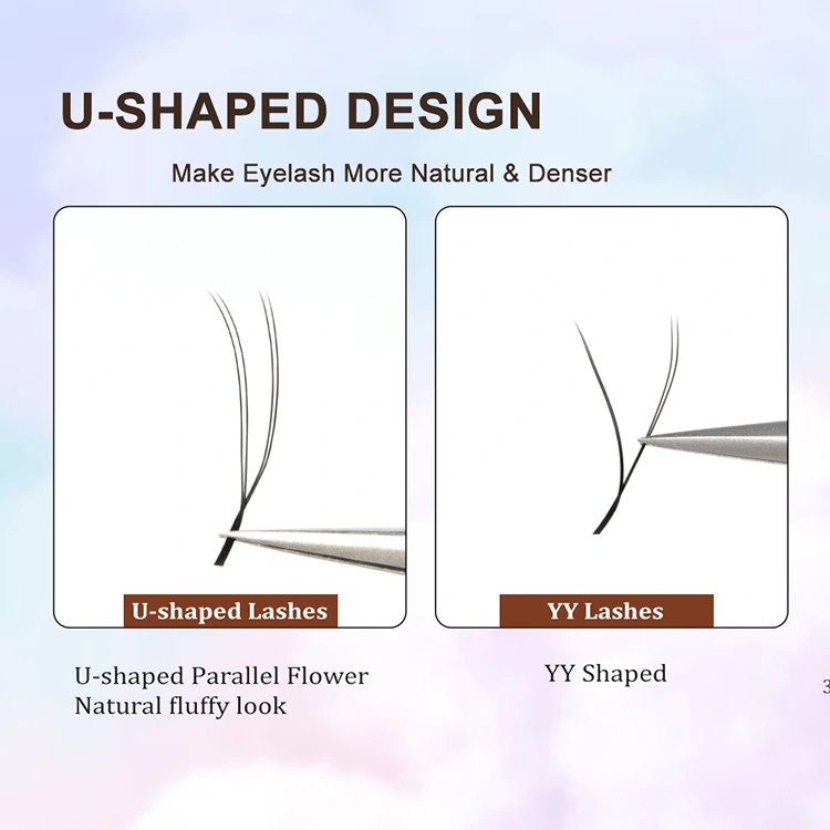 • Прорыв ограничений традиционных Y-образных ресниц, U-образная структура обеспечивает большую площадь связи, увеличивая адгезию на 30% и делает ее менее вероятной упасть.