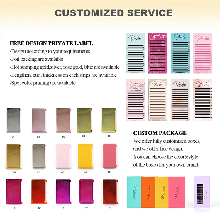 SP Eyelash предлагает широкий спектр вариантов настройки для V-образных бигуди для ресниц, включая проприетарные бренды и упаковку, низкое минимальное количество заказа и бесплатную поддержку дизайна. Перед размещением объемного заказа, пожалуйста, уверенно протестируйте качество, используя доступные бесплатные образцы.